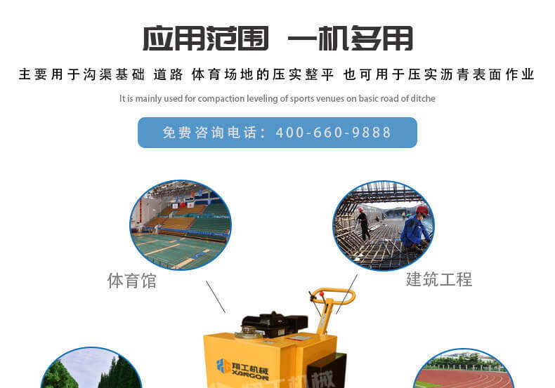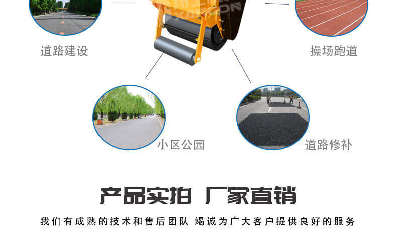 主要用于溝渠基礎(chǔ),道路,體育場(chǎng)地的壓實(shí)整平,也可用于壓實(shí)瀝青表面的作業(yè)。手扶(450)單輪壓路機(jī)可以替代平板夯。