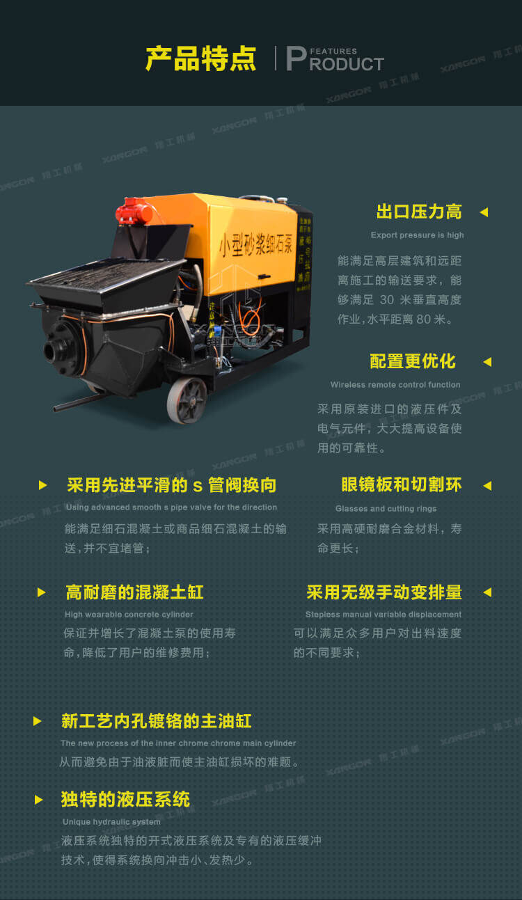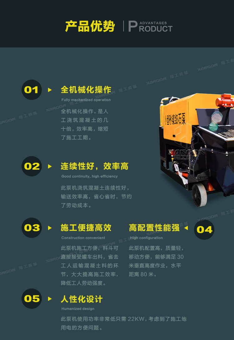 3.此泵機(jī)體積小,施工方便,操作簡單,可樓面直接澆注,大大降低了勞動強(qiáng)度。