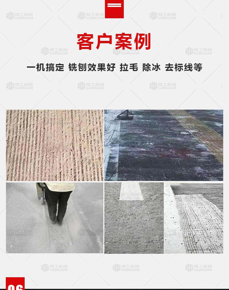 用于橋面鋪設(shè)瀝青或車間舊的混凝土地面重新攤鋪混凝土之前,清理水泥浮漿以及鏟平拉毛,也用于清理建筑施工中堅硬灰渣。