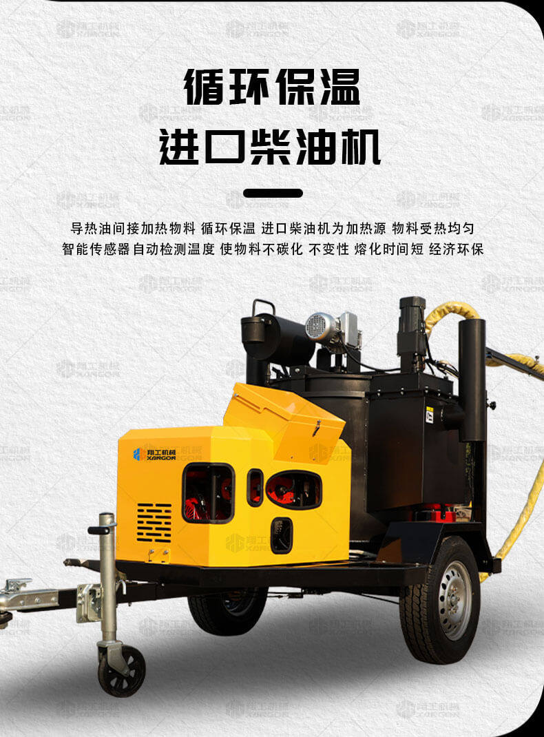 XGF-200瀝青灌縫機使用原料為瀝青灌縫膠,主要用于瀝青路面不規(guī)則裂縫、混凝土路面、橋梁伸縮縫、上下水道、煤氣管埋設機鋪裝路面的連結處防水處理,是翔工機械專門設計、生產(chǎn)的瀝青補灌縫機械。